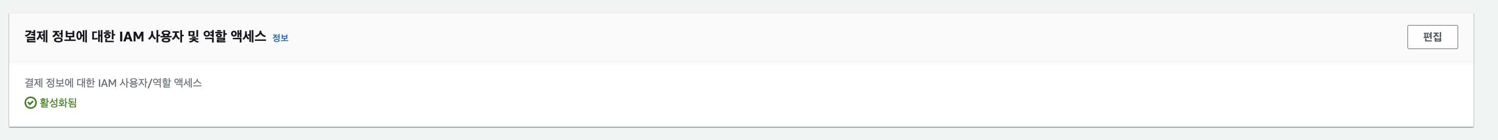 - 청구 대시보드 접근: IAM 사용자로 로그인한 경우, 청구 대시보드에 접근하려면 루트 계정으로 로그인해야 한다. 루트 계정으로 로그인하여 'My Account'를 클릭하고, 아래로 스크롤 하여 '청구 정보에 접근하기 위한 IAM 사용자와 역할' 설정을 활성화한다.