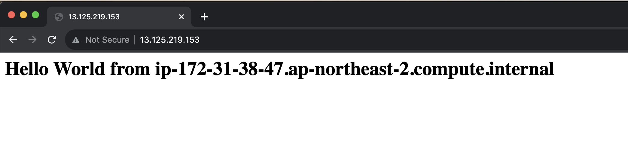 • "Hello World" 메시지가 표시되면 웹 서버가 정상적으로 설정된 것