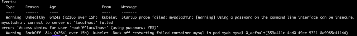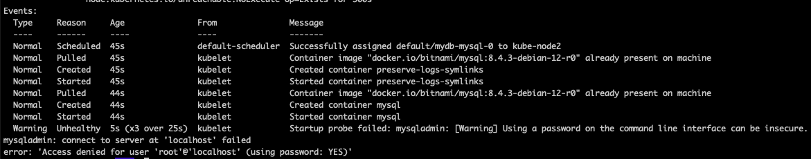 startup probe failed: mysqladmin: [Warning] Using a password on the command line interface can be insecure.