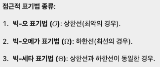 • 점근적 표기법을 통해 입력 크기에 따른 실행 시간을 간단히 표현.