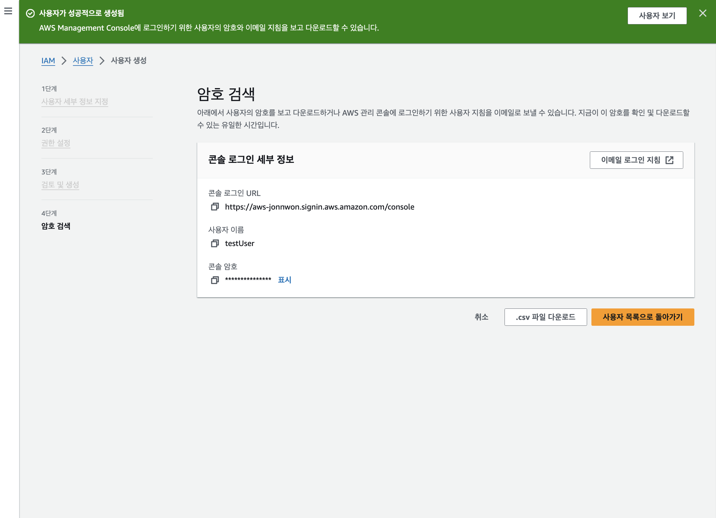 - 사용자가 성공적으로 생성되면 로그인 방법 설명을 이메일로 받거나 CSV 파일로 다운로드